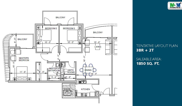 TENTATIVE LAYOUT PLAN, 3BR WITH 2T, SALEABLE AREA 1850 SQ