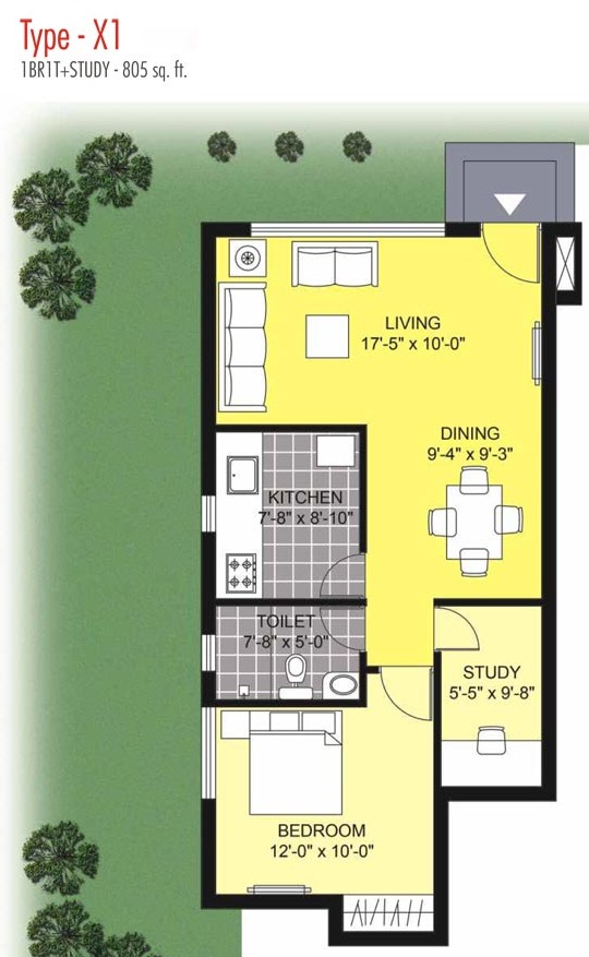 TYPE X1 1BRT WITH STUDY 805 SQ
